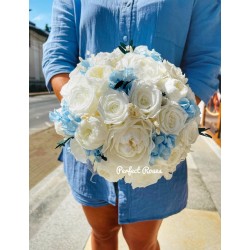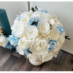 Buchet realizat complet din bujori naturali criogenati de mărimi diferite, alături de hortensie criogenata!