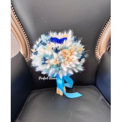 Buchet realizat din flori naturale criogenate si flori naturale uscate/stabilizate.